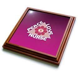 Product Description : Size: 8x8 Trivet with 6x6 ceramic tilePeace Love Nurse Trivet is measuring 8w x 8h x .75d. Made of solid wood with padding on back that protects your furniture. Framed trivet comes with 6w x 6h ceramic gloss tile attached to the wood frame.